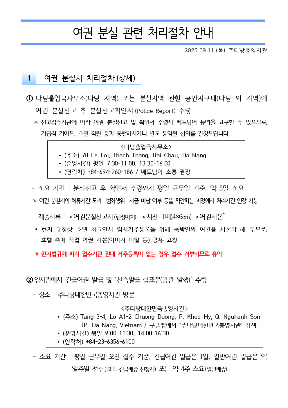 여권 분실 관련 처리절차 안내